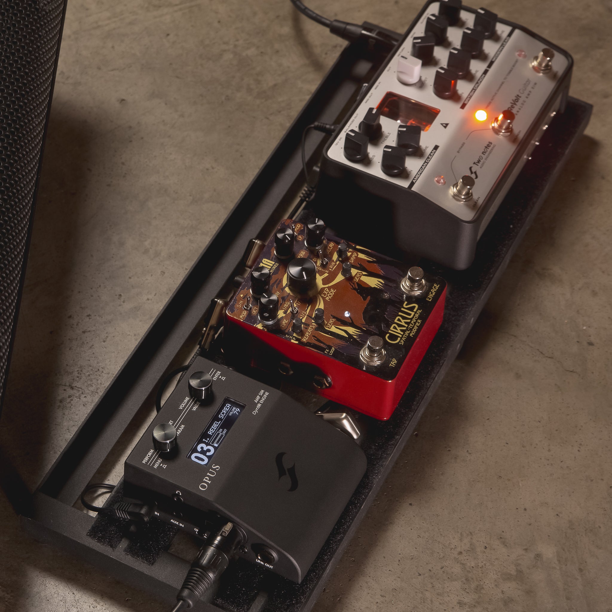 In the market for the ultimate fly rig? Seeking virtually unlimited tonal possibilities, all packed in a made-to-move, pedalboard friendly format? Meet ReVolt Guitar and OPUS - the definitive go-anywhere combo fusing our premier all-analog, tube-powered preamp know-how and a world of class-leading virtual cabinet emulation courtesy of our critically-acclaimed DynIR™ Engine. That’s not all folks: setup, it’s a snap thanks to comprehensive MIDI programming facilities across both OPUS and ReVolt Guitar - not to mention we’ve even included a purpose spec'd ⅛-inch MIDI cable for immediate creative potential from the get-go.
